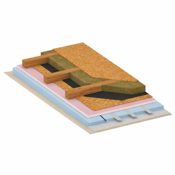 – 15cm kőzetgyapot hang és hőszigetelés, közte 62cm-enként 60/140 pallóváz (KVH) tartószerkezet